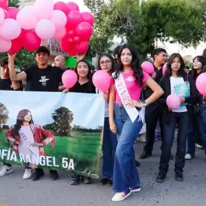 La caminata partió desde la calle 17 Bravo rumbo al Paseo Méndez, en un ambiente lleno de color, música y alegría. A lo largo del recorrido participaron 31 bellísimas candidatas a Reina del CBTis 236, acompañadas de sus contingentes, compañeros y familias que con orgullo apoyaron a sus representantes. 🎈🎶