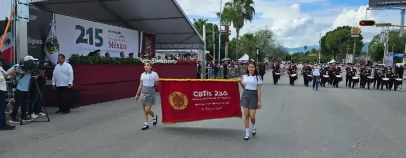 Nuestra Banda de Guerra, dirigida por el profesor Gamaliel Morquecho, abrió el contingente con fuerza, disciplina y gallardía. Este destacado grupo de jóvenes, que actualmente ostenta el tercer lugar a nivel nacional en DGETI, es un verdadero motivo de orgullo no solo para el CBTis 236, sino también para todo Tamaulipas. Su entrega y pasión hacen brillar el espíritu de nuestra institución en cada presentación.